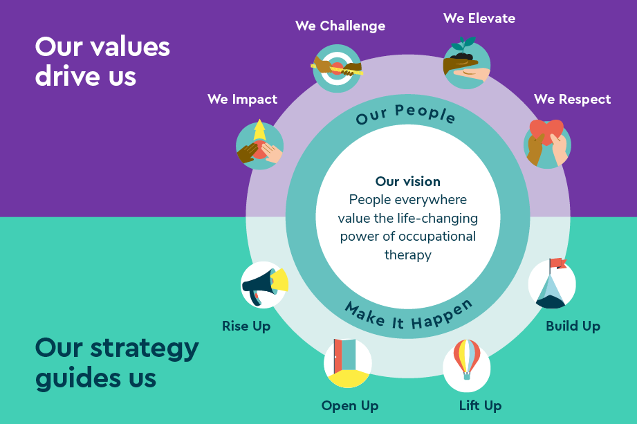 Rise Up: We will rise up to be bold, progressive advocates and champions – raising our profile and voice so that more people understand the power of what occupational therapists do.